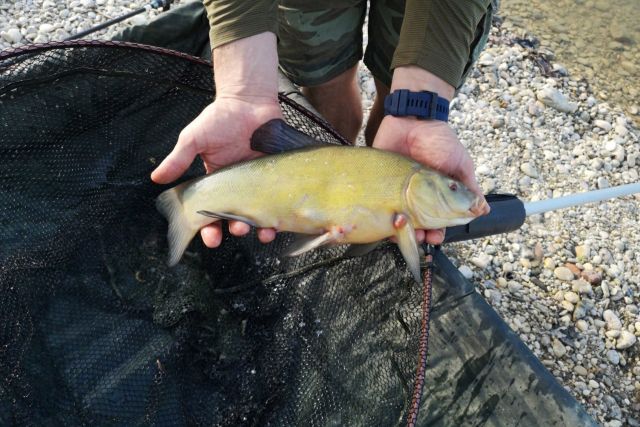 Mrijesti se od svibnja do srpnja, u mirnim vodama, plitkim, bogatim vodenim biljkama. Ženka ima od 300 do 800 tisuća jajašaca.